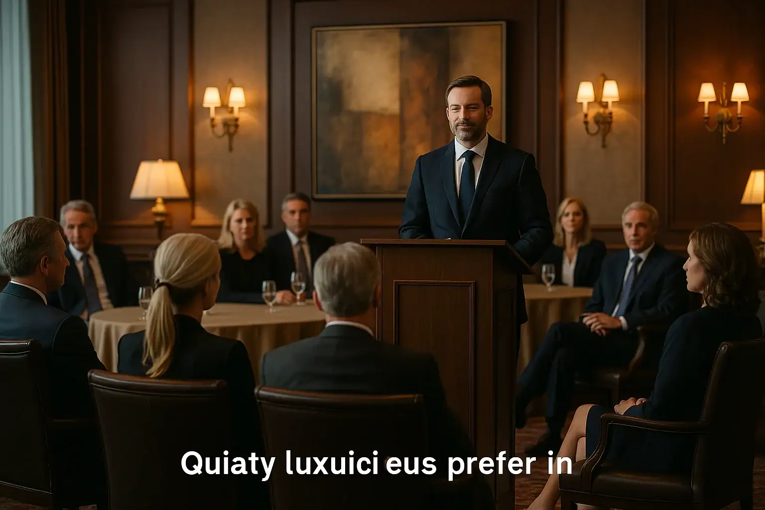 Exclusive lifestyle event with well-dressed guests seated and socializing in a luxury hall.
