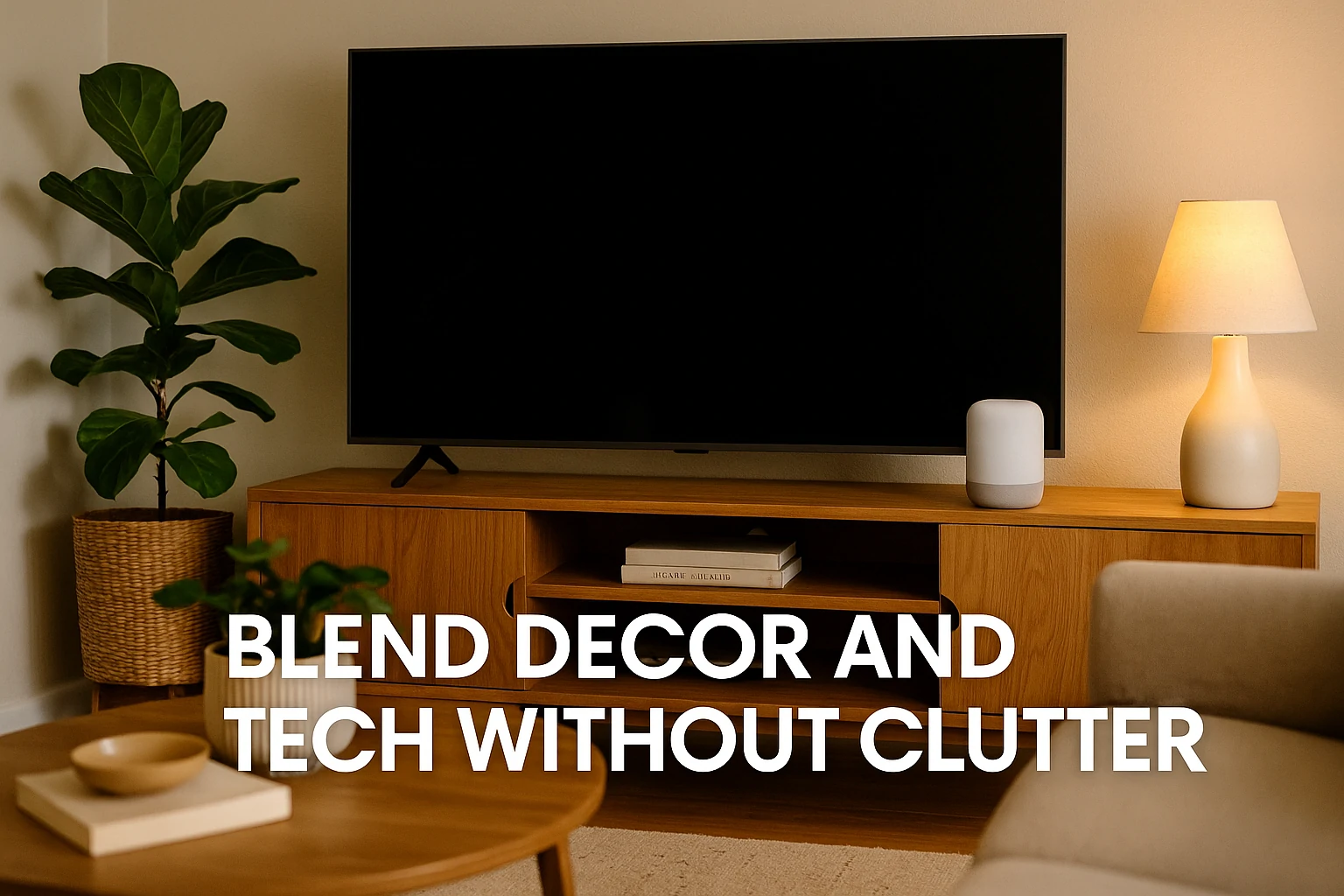 A: Hide cables, match device colors, and place tech near décor pieces.