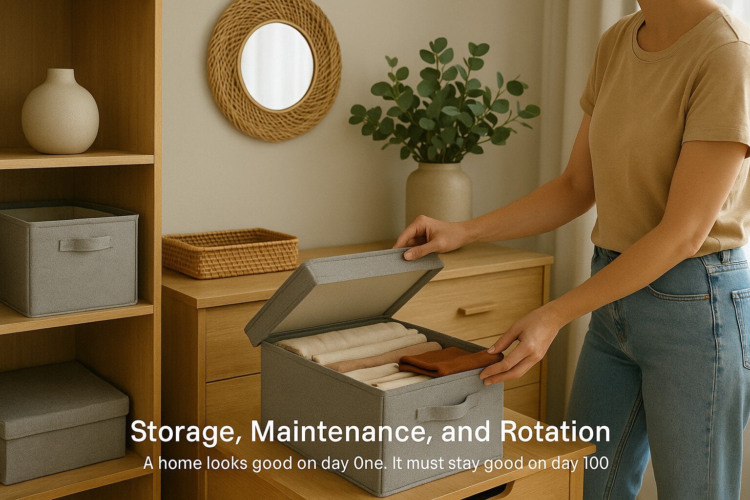 A home looks good on day one. It must stay good on day 100. That needs storage and small upkeep.